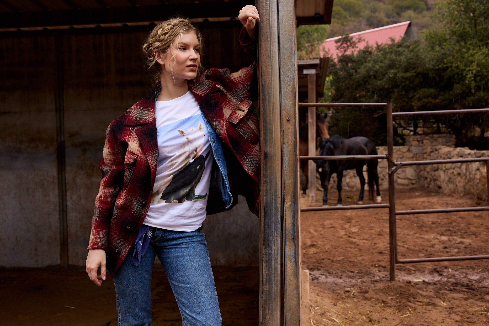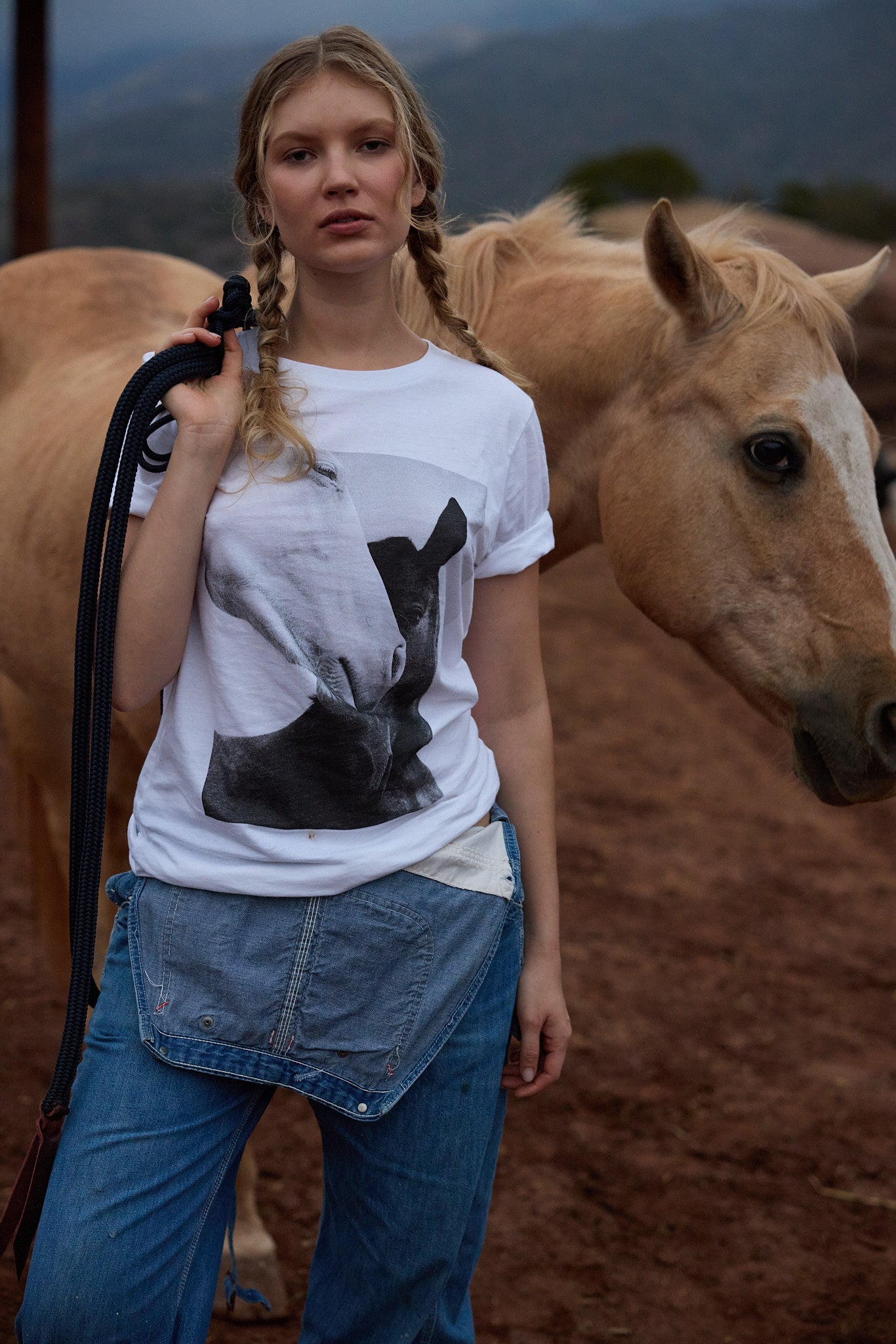 Inspired by our founder Maeve’s own rescue horses, each Rescue Tee features the animals that started it all; two she kept forever and one who found her forever home.